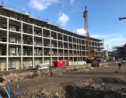 Het gaat hard in het Hart van de Waalsprong; het woon- en winkelhart van het nieuwbouwgebied 'Waalsprong’ in Nijmegen. Gebiedsontwikkelaars AM en VanWonen werken hier samen aan 11.800 m2 winkelruimte en 500 woningen. Begin januari 2022 is het hoogste punt bereikt van woonblok Bliek (B) met 50 sociale huurwoningen die uitkijken op de Graaf Alardsingel. Portaal brengt deze appartementen na de zomer in de verhuur via Entree.nl.