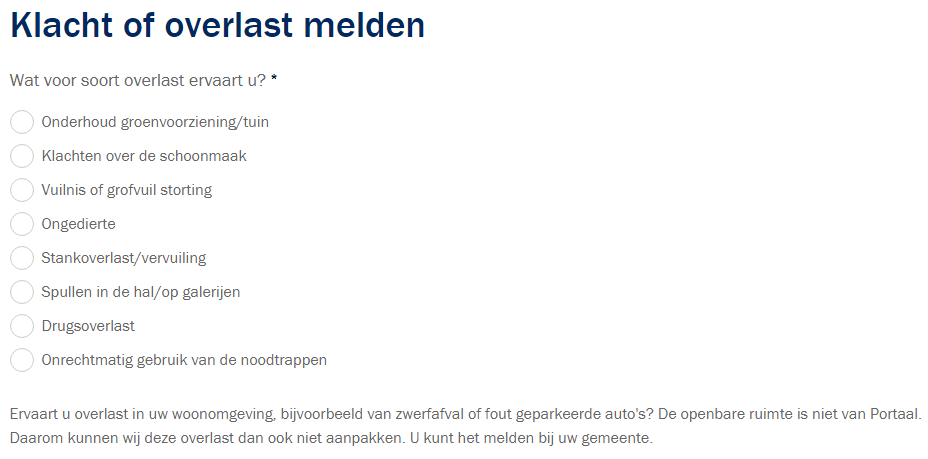 - Kies voor "Ik heb overlast in een algemene ruimte (bijv. ongedierte of vuilnis in een centrale hal)".