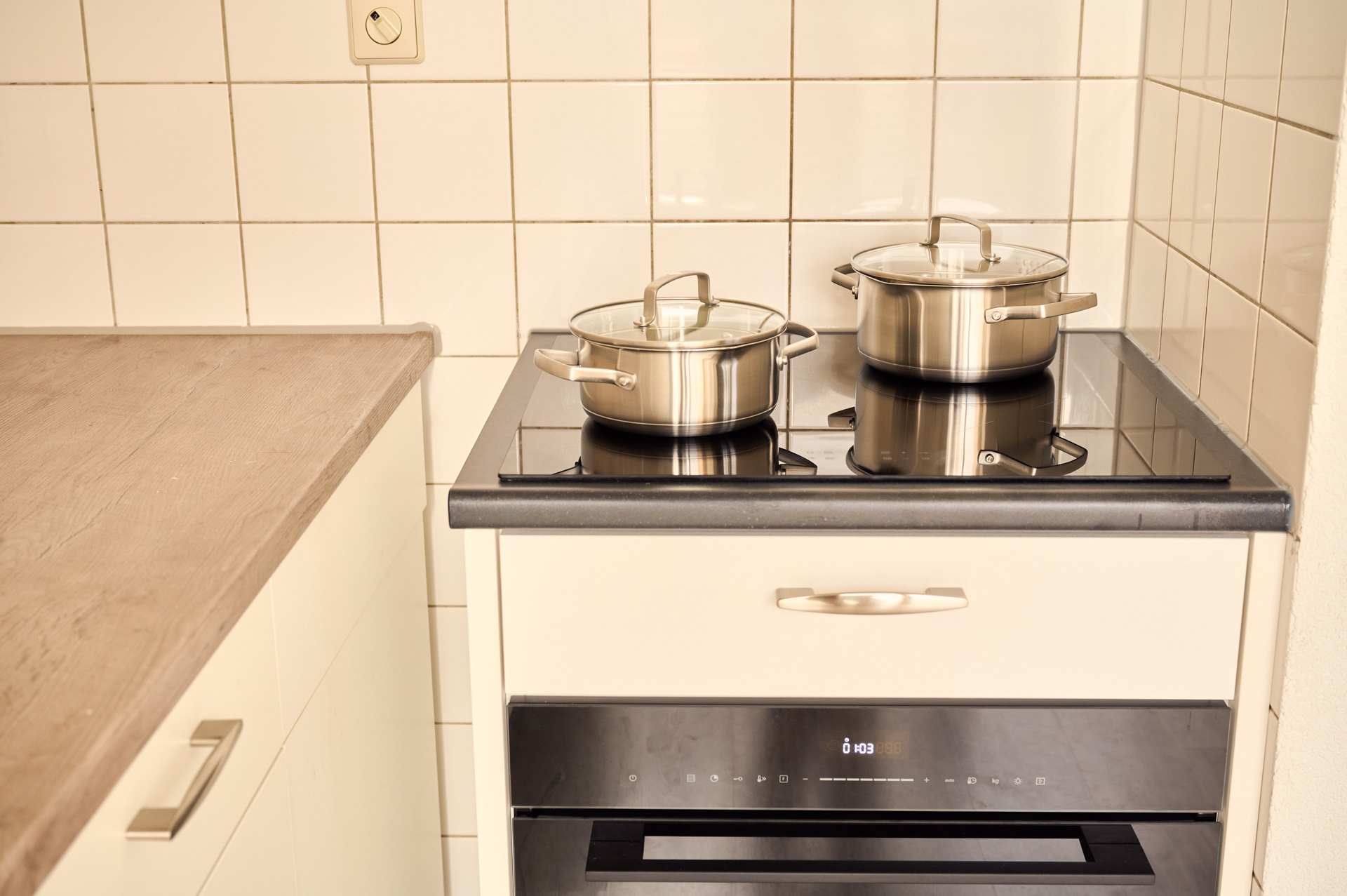 De monteur komt terug en voert de werkzaamheden uit. Dat duurt meestal 1 of 2 halve dagen. We verzwaren uw meterkast. En u krijgt een langer aanrechtblad of een extra kastje. Daarna kunt u uw elektrische kookplaat aansluiten.