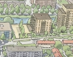 Op de plek van het voormalige woonzorgcentrum bouwen we twee nieuwe woongebouwen van 8 en 12 woonlagen. Het plan bestaat uit 143 woningen:
