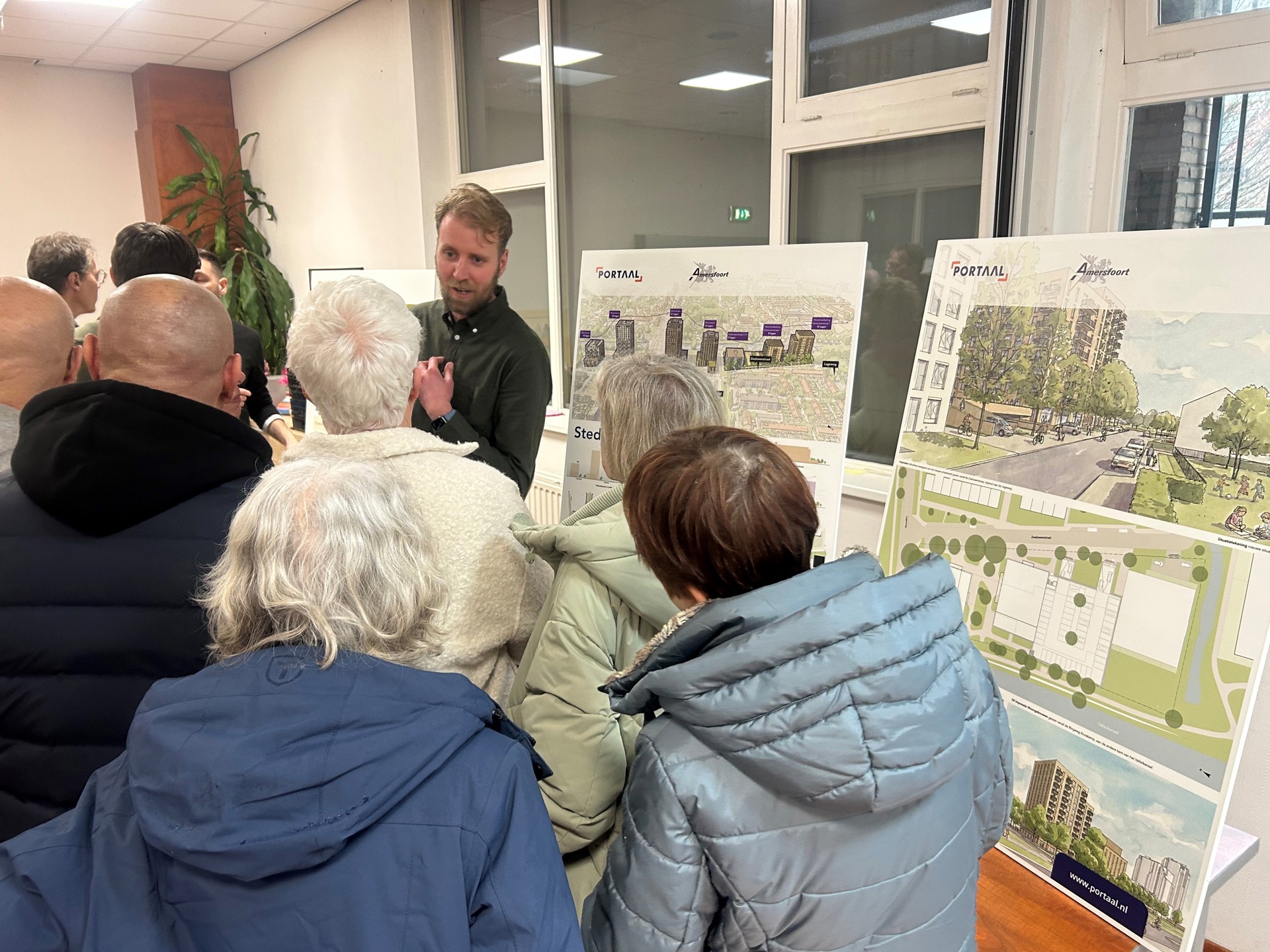 Tijdens de inloopbijeenkomst spraken we samen met de gemeente Amersfoort en Beweging 3.0 veel buurtbewoners over de plannen voor de herontwikkeling. De opkomst was hoog en de reacties positief. Vooral de plannen voor een centrale ontmoetingsplek op de begane grond vielen in de smaak. Buurtbewoners gaven aan dat hier echt behoefte aan is. Ook wijkorganisaties dachten mee over hoe zij kunnen bijdragen aan een sterke buurt. Daarnaast werden het gebouwontwerp, de groene buitenruimte en de halfverdiepte parkeergarage voor bewoners goed ontvangen.