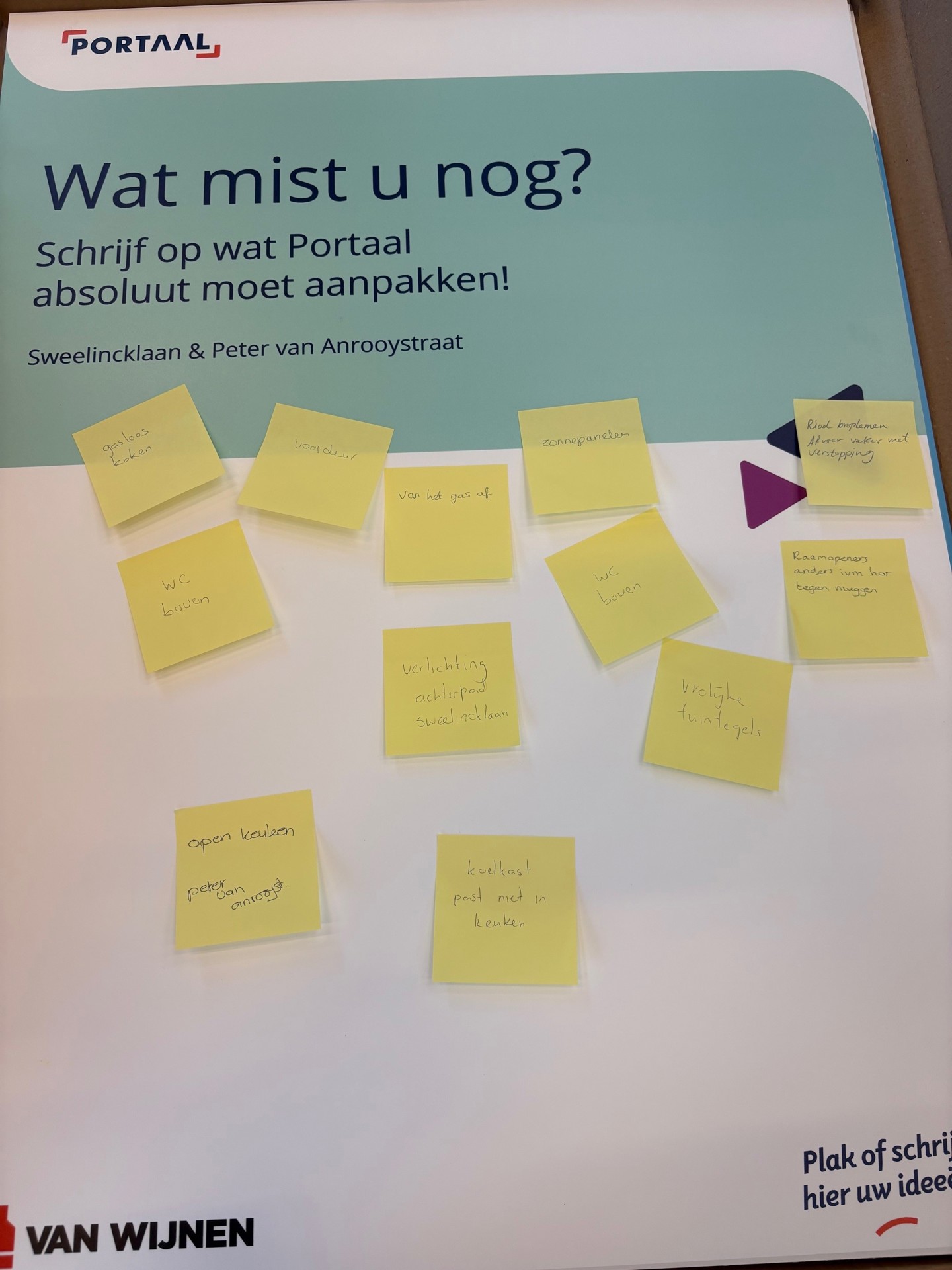Portaal werkt met alle bewoners aan een betrokken proces. Hiervoor is tijd gereserveerd en staan meerdere bijeenkomst gepland. Zie planning.