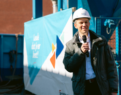 De bouw werd feestelijk ingeluid met een druk op de knop in een hijskraan, waarmee Minko de Weerd (Portaal), Francis van Haren (Van Grunsven Groep) en wethouder Jeroen Bulthuis het officiële startsein gaven. Wethouder Bulthuis onderstreepte het belang van dit project voor de stad: "Met de komst van een woontoren transformeert een onopvallend stuk grond naar een echte blikvanger bij het Eemplein en de binnenstad. De grootte van de kavel en de nabijheid van het spoor brachten uitdagingen met zich mee, maar samen hebben we dit project op deze plek mogelijk gemaakt."